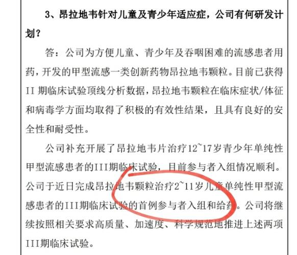 $众生药业(SZ002317)$$海王生物(SZ000078)$$粤万年青(SZ301111)$ 昂拉地韦儿童颗粒剂出来的话起码能取代磷酸奥司他韦颗粒30%的市场。磷酸奥司他韦的肠胃副作用蛮大的,儿童呕吐率在30%左右,年龄越小呕吐率越高,有小孩的应该都比较清楚。呕吐了怎么办?只能吃退烧药和小儿豉翘清热颗粒硬扛,一个美林退烧还不够,得和对乙酰氨基酚混悬液交替使用,四天三夜都睡不好觉。甲流很凶险,每...