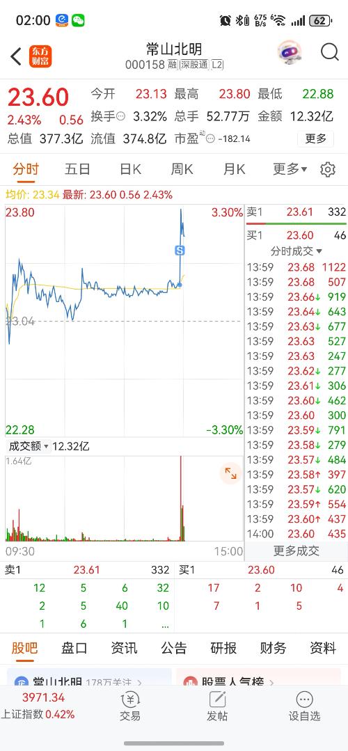 $常山北明(SZ000158)$大利好来了踏空的隔夜单排吧