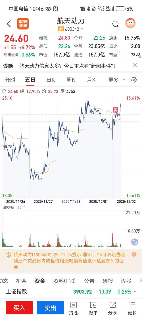 $航天发展(SZ000547)$仓位太重压力大,做了个高低切。买了点航天动力。