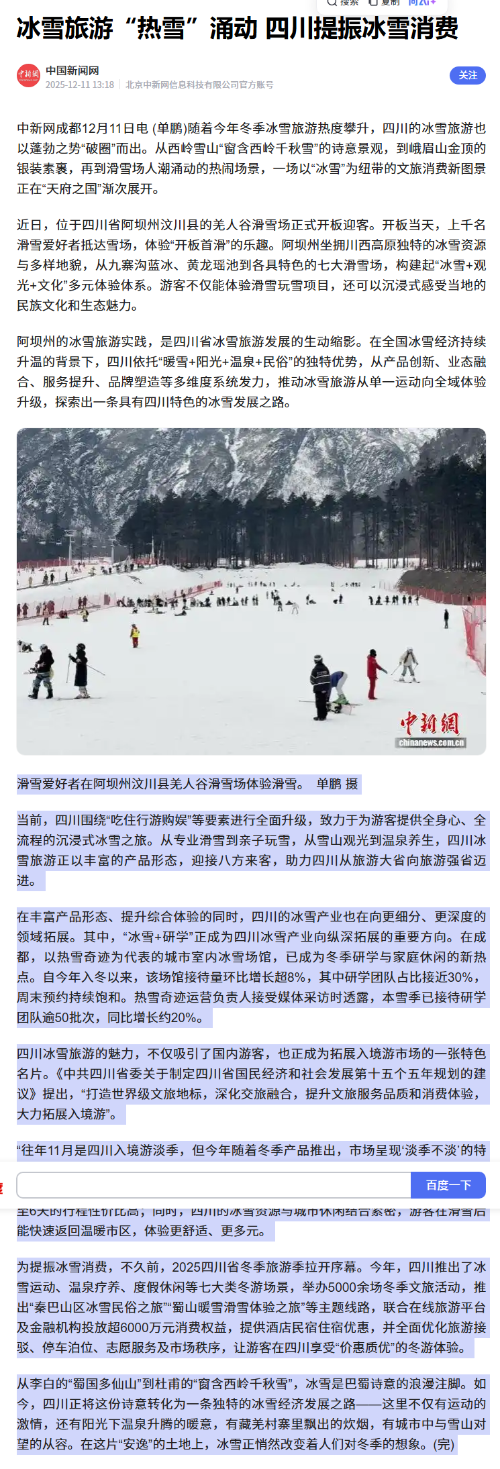 $天府文旅(SZ000558)$$西域旅游(SZ300859)$$长白山(SH603099)$$大连圣亚(SH600593)$ 冰雪旅游“热雪”涌动四川提振冰雪消费