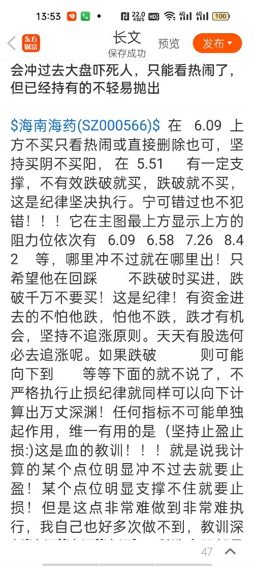 有领导力的岳铮16 更新于 10-31 21:19 62次浏览 $海南海药(SZ000566)$我还没有上车不知道海南海药能不能回到5.81我好上车 23