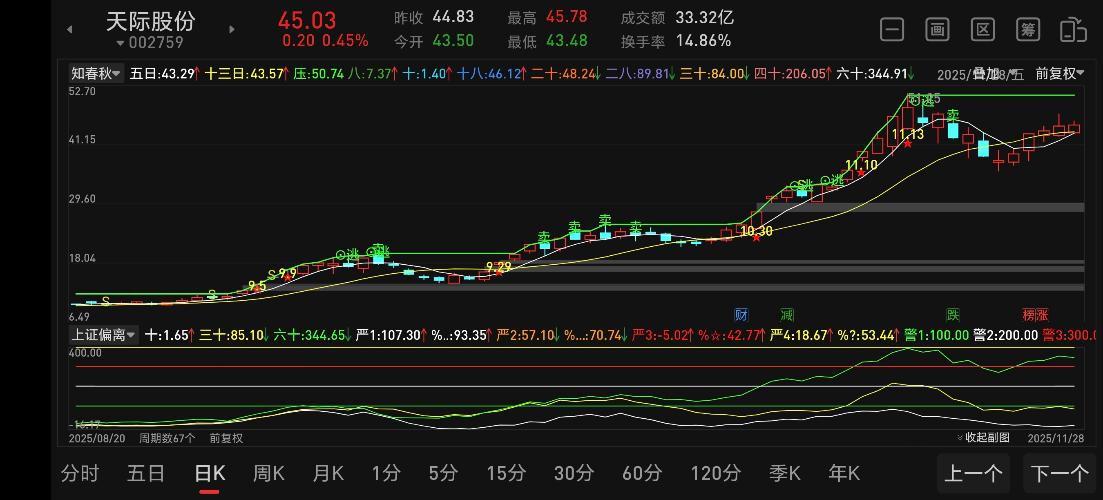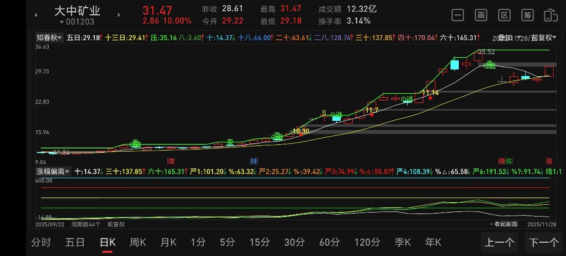 $平潭发展(SZ000592)$$国晟科技(SH603778)$$大中矿业(SZ001203)$ 11月份收宫,平均股价月线两连阴,震荡趋势明显,仅有海峡两岸、固态电池和商业航天等板块表现较为活跃。 目前沪深两市维持1.8万亿水平,年底大资金收拢结算窗口,缩量环境下难有大级别行情,展望12月份行情依然不容乐观。 总结至今为止部分牛股股走势,发现多波趋势牛股最受欢迎,承接力度大,大资金容易进出,行情...