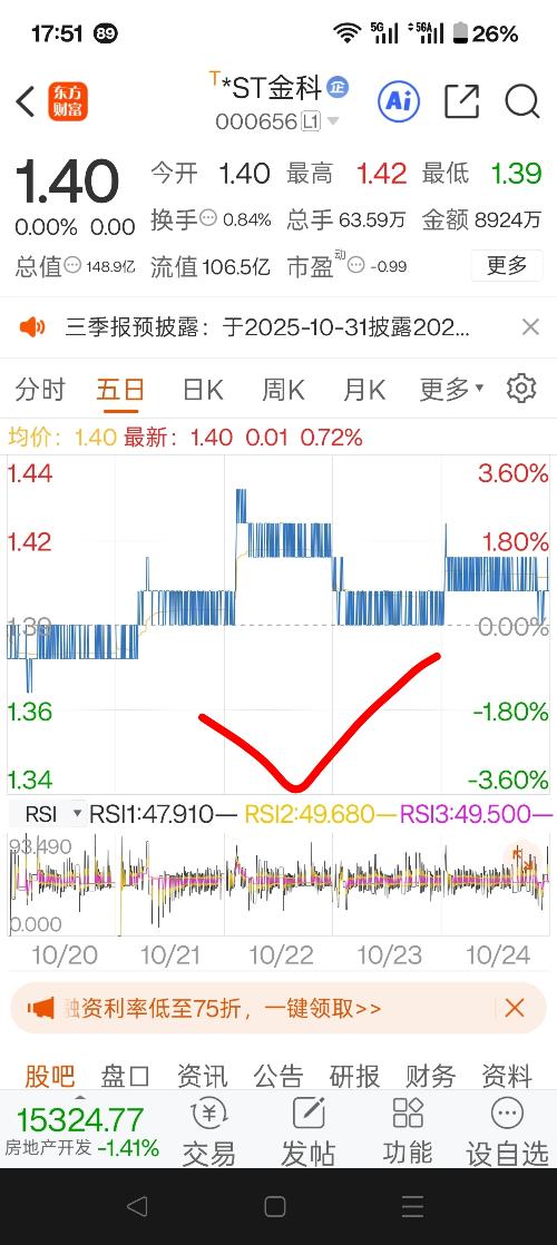 $*ST金科(SZ000656)$金科五日线,开盘就看不到了