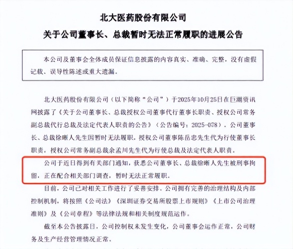 资讯 北大医药“新老板”徐晰人被刑拘!资本迷局与经营困境引爆风险