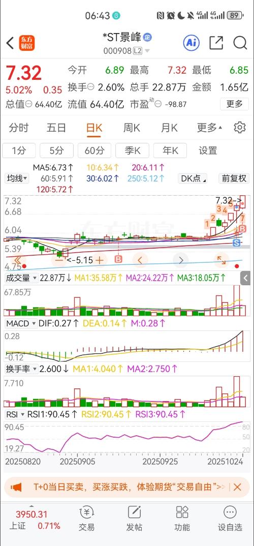 $*ST景峰(SZ000908)$横盘几个月一点不慌,突然间就这样突突突的往上涨了个心里搞的七上八下了,主力大哥还是继续横盘磨吧