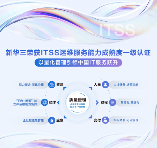 新华三荣膺ITSS运维服务能力成熟度一级认证,以量化管理引领中国IT服务跃升 【发布时间:2025-12-01】 11月28日,紫光股份旗下新华三集团正式通过《信息技术服务标准》(ITSS)运维服务能力成熟度一级认证,运维服务能力跻身国家顶尖梯队。该认证由工业和信息化部、国家标准化管理委员会指导,信息技术服务工作组组织评审的国家标准体系,是我国信息技术服务领域最高等级的能力资质。荣获ITSS一级认...