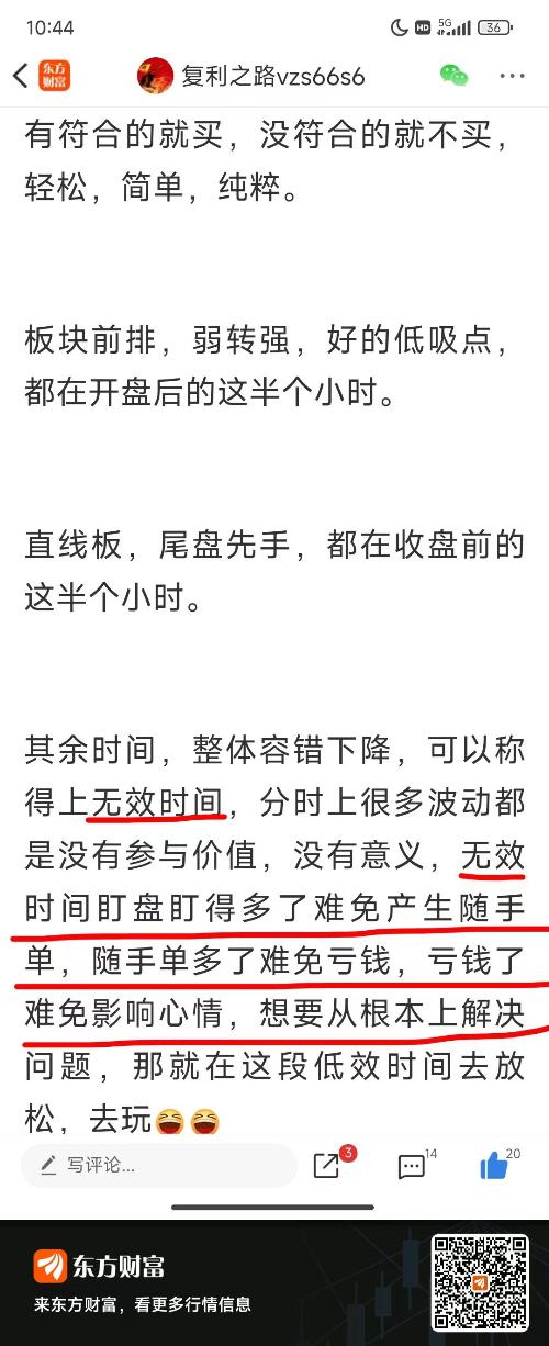 大家晚上好! 昨天盘前提到这个词,无效时间。每天好的短线机会也就那么几个,基本都集中在开盘后半小时和收盘前半小时,分时上很多波动都是没有参与价值,没有意义,无效时间盯盘盯得多了容易亏钱。 今天的操作也是很简单,一上午就这一笔操作,足够了。 都是盘前思路提到的,符合条件那就直接执行好了,知行合一。 另外,昨天看好短线,看好题材和抱团,今天这一块也是走了一个高潮,贴一下昨天说的逻辑 OK回顾之后,说一...