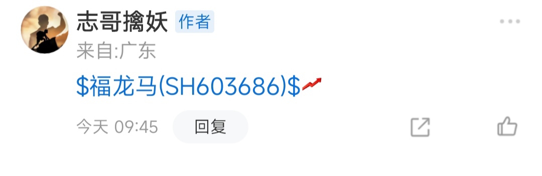 $福龙马(SH603686)$早盘高位震荡补量完全符合我的预期,分歧转一致的那一下就该恭喜追踪我文章的收获涨停,肉肉吃个够