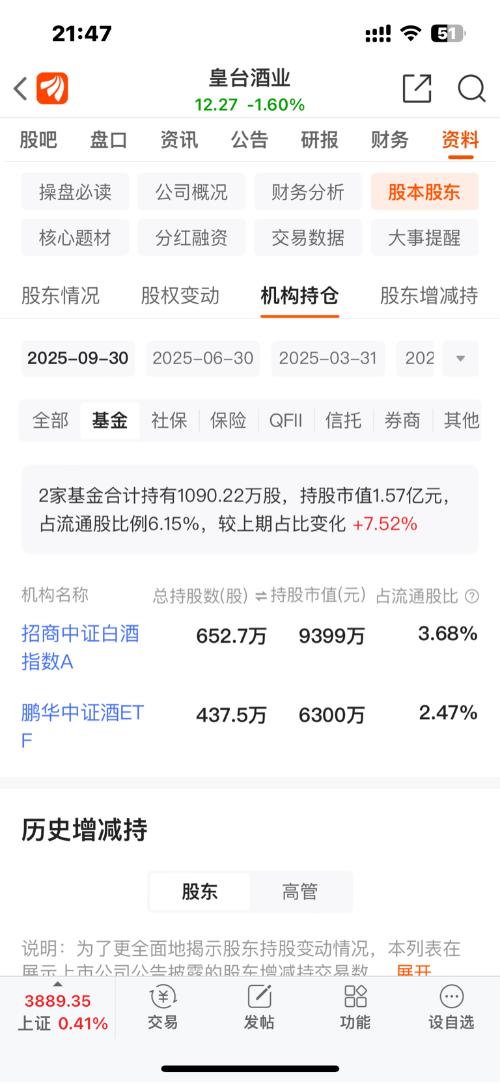 $皇台酒业(SZ000995)$如果亏的不多可以考虑割肉,我亏了18个点周一割肉出去,皇台2025年全年收入不到3个亿,过完年基本就是百分百戴帽的局面,现在他的3个季度营收只有8700万,而且盛达在增持,又做质押,股票平仓线大概率就在10.8到11的区间,如果股票触发平仓,大股东不增持就会面临新一轮下跌。下面在给各位看看白酒基金已经把皇台踢出去了,是走是留自己判断。