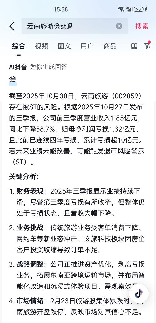 $云南旅游(SZ002059)$一不小心就st