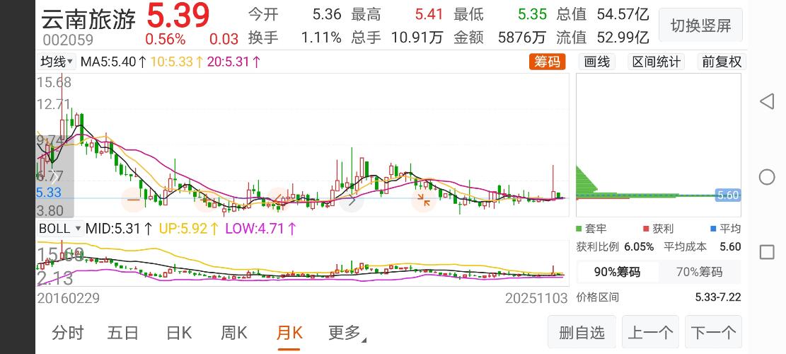 $云南旅游(SZ002059)$看月线,该股肯定还有一波上升