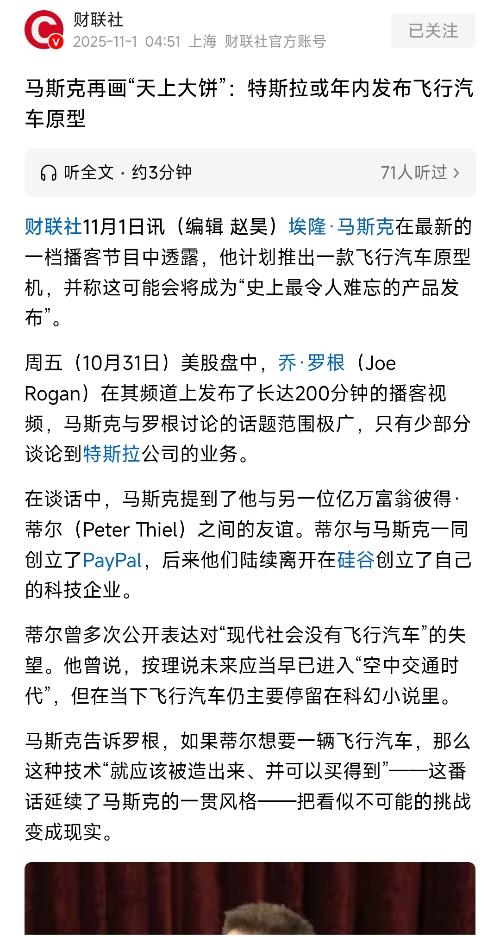 马斯克近日计划在2025年年底前推出特斯拉飞行汽车原型机,并称这将是一次“史上最令人难忘的产品发布