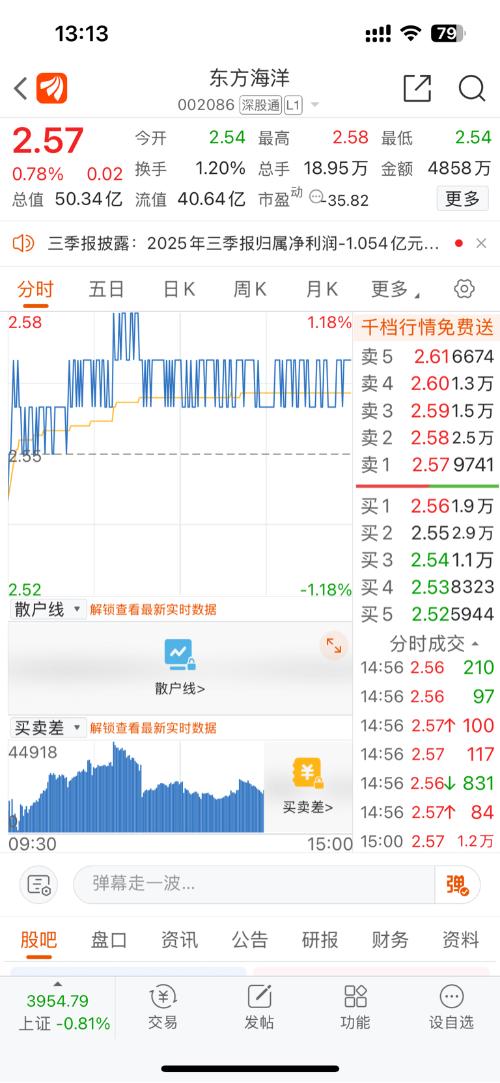 $东方海洋(SZ002086)$信不信我一买就跌