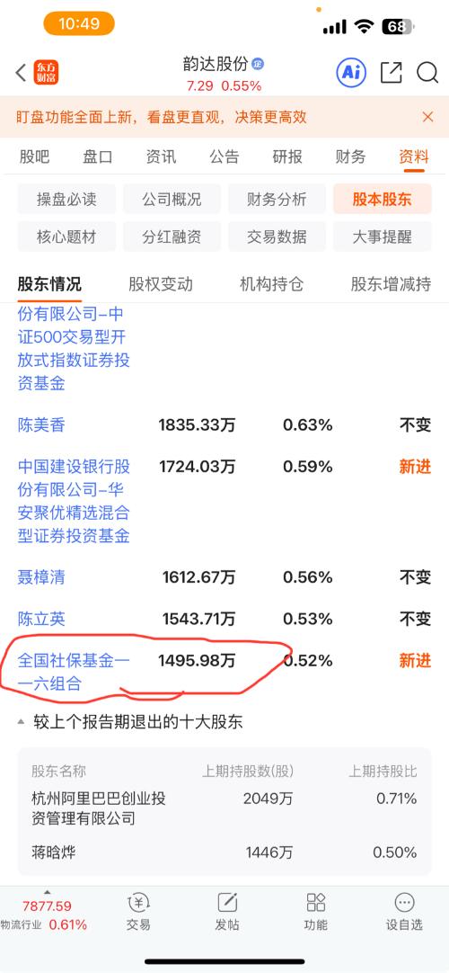 $韵达股份(SZ002120)$社保资金是来托盘的还是来赚钱的?