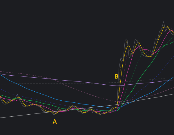 楚江新材 $楚江新材(SZ002171)$第一阶段顶约12.5元,第二阶段顶约16.5元,目前价格正处在第一阶段区域,前期买入的可持仓跟踪。该票9月26日跌至下方阻力位(图中A点),空头未能突破,随即多头小周期动力开始启动,在窄幅区间(合力)内加速突破(方向),直至9月30日突破最上方阻力位(B点,最佳买点),“空间”完全打开,主升浪开启。 白银有色 $白银有色(SH601212)$我在10月14...