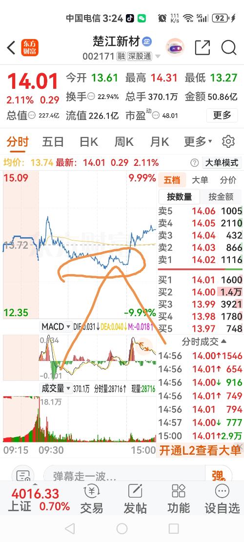 $楚江新材(SZ002171)$不上15我不走了,15块肯定值的