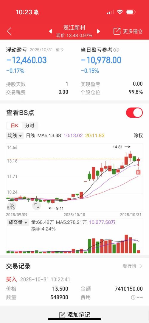 $楚江新材(SZ002171)$:今天在13.5、13.3低吸二笔,等待好收成。