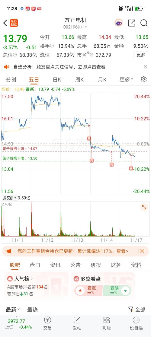 $方正电机(SZ002196)$这么多散户,怎么涨,带不动啊。