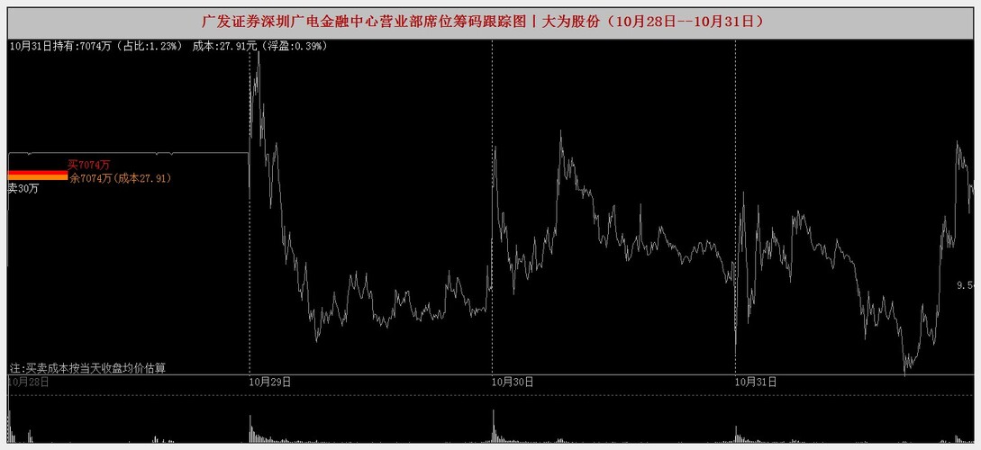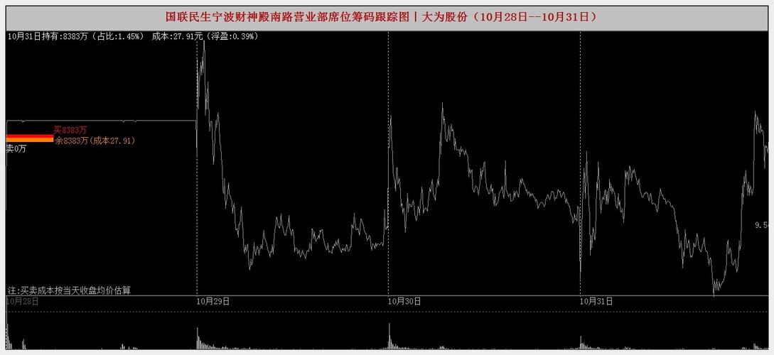 $大为股份(SZ002213)$在10月28日--10月31日共有4个交易日,区间涨幅9.54%,连续上4天龙虎榜。 最大总买入席位机构,买入金额7.89亿(上榜4次,总卖出金额7.81亿)。 最大总卖出席位机构,卖出金额7.81亿(上榜4次,总买入金额7.89亿)。 前三大持有席位分别为: 1.机构1.96亿(占流通股比例3.39%) 2.国联民生宁波财神殿南路营业部8383万(占流通股比例1....