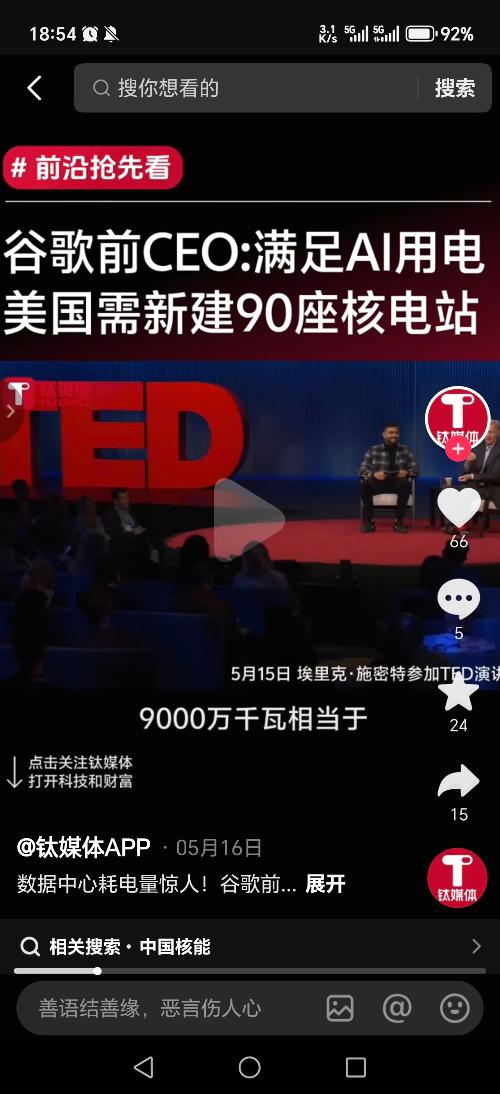 $海陆重工(SZ002255)$从黄仁勋最新的表态讲话看美国科技巨头们的“能源焦虑”,他们的意思就一句总结“电力跟不上芯片再领先多少代都是白搭”,因此美国政府才又大力推进核能,而中国的钍基熔盐堆技术又是对美国还在用“铀”的传统核能力的降维打击。目前美国数据中心的电力费用是中国的4倍左右,作为实现“准无限能源的钍基熔盐堆”一旦三五年后逐步放量投入使用,更是对传统核能的降维打击。 不知是市场对“钍基熔...