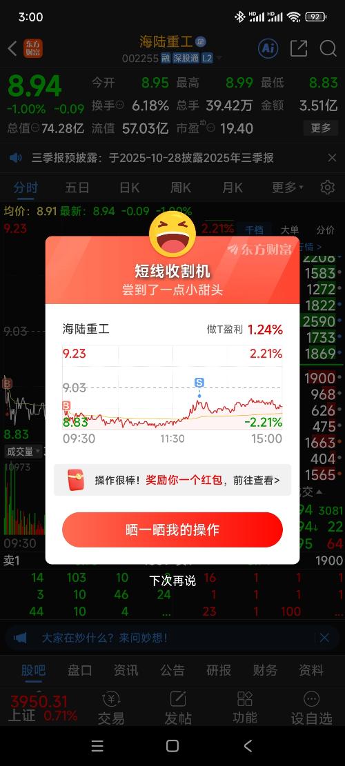 $海陆重工(SZ002255)$明天一飞冲天免不了,质优价廉