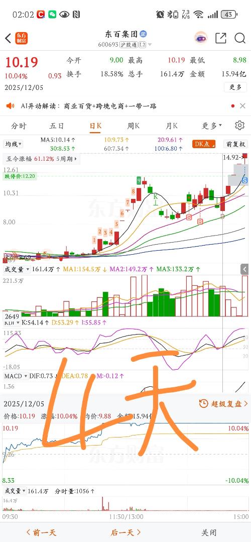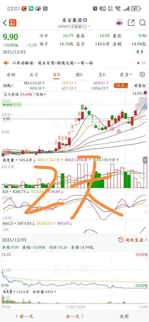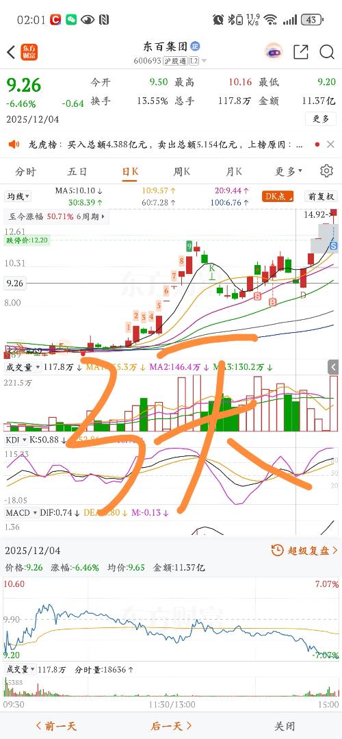 $粤万年青(SZ301111)$12月1日说了,除非明天碰五日线后能快拉起,则有反包,否则看空。12日2日那就,就是碰了五日线后快速拉起,收盘一颗红十字星,才有了3日和4日的大涨。12月3日到3月3日有减持。这点要小心。如果它还要再涨,那么12月8日肯定要一根阳线才行,否则仍有可能再跌。周一大盘大涨,或有反弹。 $新华都(SZ002264)$12月1日说了看空,不模棱两可。连永辉很多都关门,别说新...
