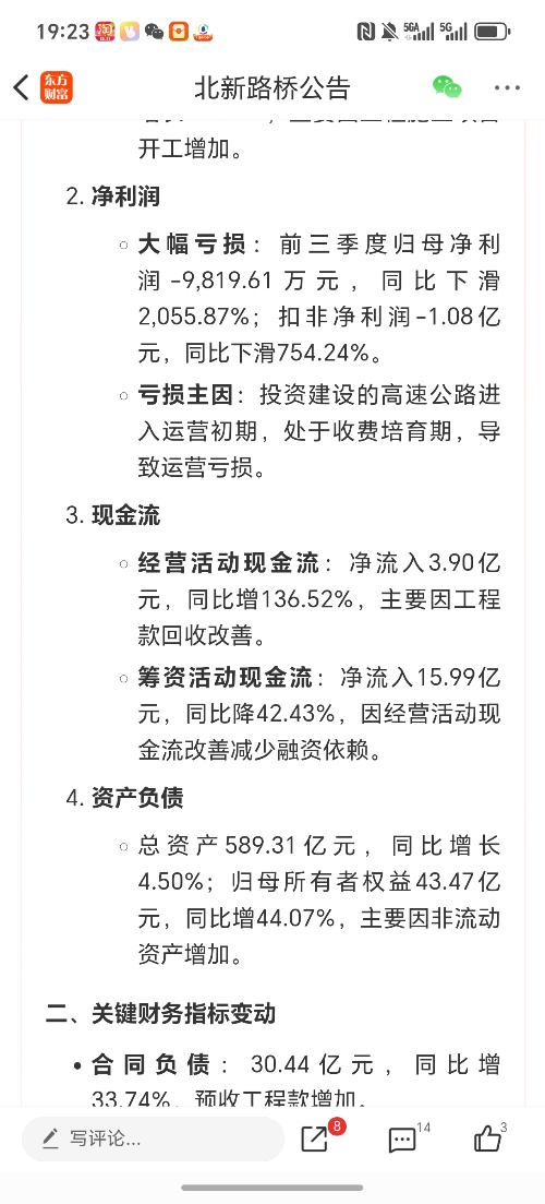 $北新路桥(SZ002307)$七十亿营业额 ,亏损,不如不做了。