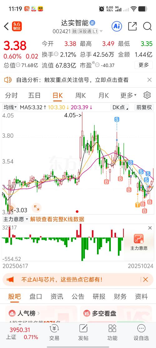 $达实智能(SZ002421)$跌了这久,连大盘都涨不过,