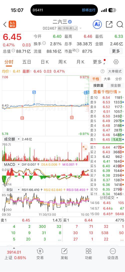 $二六三(SZ002467)$赚了2000,谢谢主力