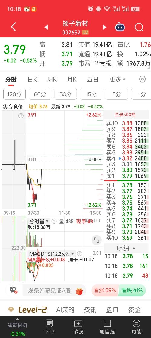 $扬子新材(SZ002652)$买了别的股,现在赚19000多了,如果一个股磨磨叽叽的,我就坚决扔了