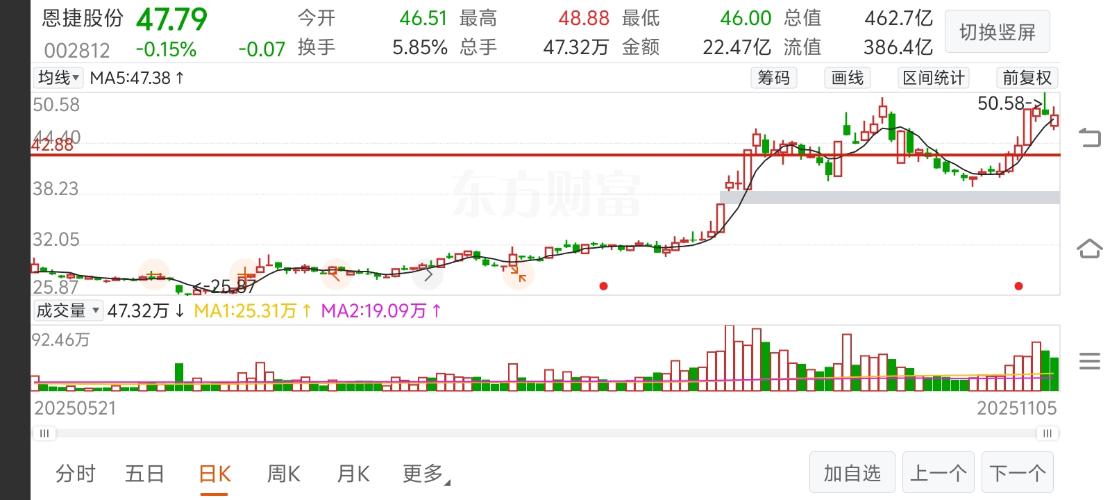 $恩捷股份(SZ002812)$这波回调到44元附近,吧里一发利好必回调