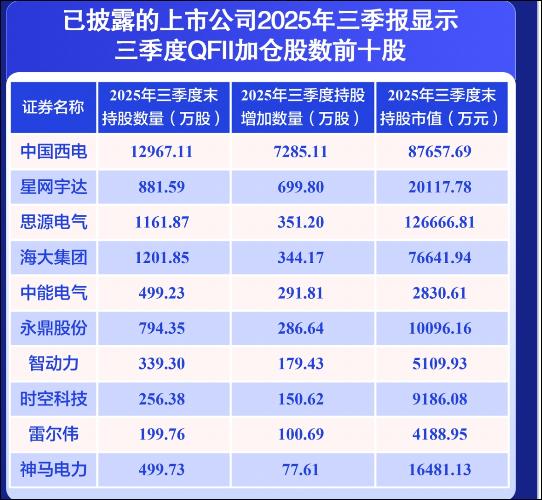 $星网宇达(SZ002829)$QFII加仓的信号意义 从表格数据看,星网宇达在2025年三季度被QFII加仓699.80万股,是本次QFII加仓股数前十中加仓力度较大的标的之一。同时,瑞银、大摩、高盛等多家国际知名机构在三季度抱团买入,这种机构动向释放出两个关键信号: -外资对公司基本面的认可:QFII作为专业机构,其加仓行为通常基于对公司技术壁垒、行业前景的深度调研,反映出星网宇达在惯性导航、...