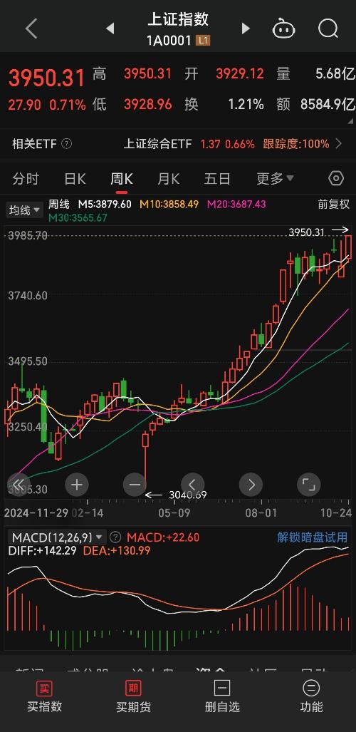 1:周末都是偏利好的,中信证券,东方财富三季报业绩非常炸裂,不知道是否会引爆下周券商的行情? 2:下周还有很多会议,加上下周预期还有美联储降息,也是利好大金融。 3:沪指已经站稳3900点,周五再度创了新高3950.31点。是否新一轮行情已经开展??创业板周五一根大阳线直接突破了20日均线,是否意味着调整结束? 周末思考了很多,从沪指的角度去看待,确实具备的天时地利人和,具备向上攻击态势!其一,特...