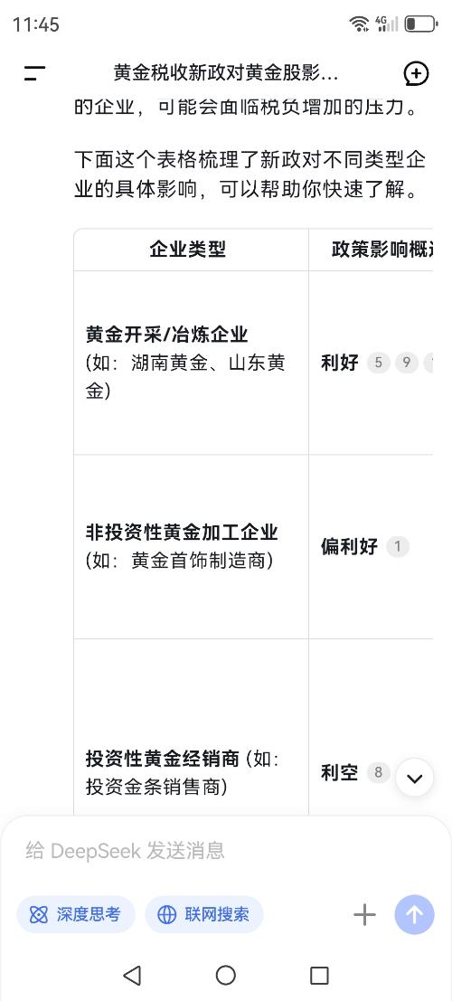 就说两点 税改增加了黄金流通环节的税收成本,企业为覆盖成本必然上调售价; 市场上“平台停售金条、价格暴涨”的现象,也印证了税改对实物金市场的冲击