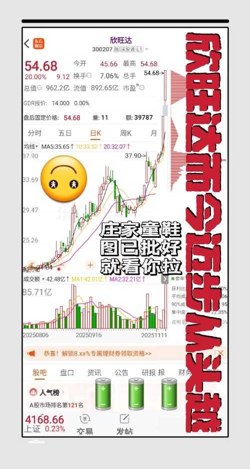 $欣旺达(SZ300207)$这也太牛了, 明天会高开几个点?