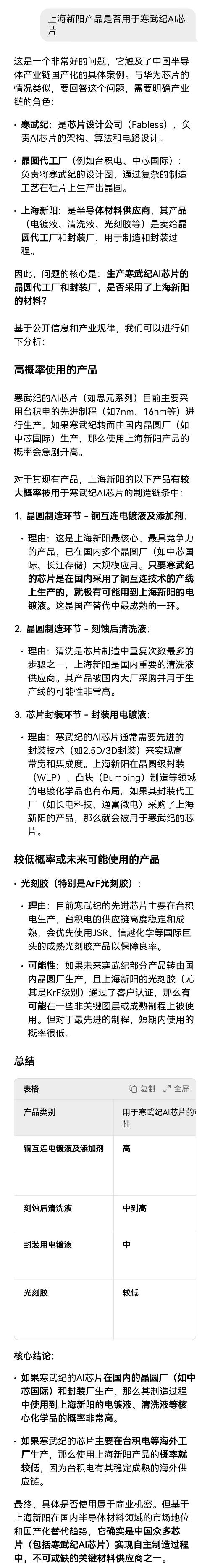 $上海新阳(SZ300236)$ $国产芯片(BK0891)$ $光刻机(胶)(BK0884)$ 最卡脖子最高技术的寒王AI芯片和华W高端手机芯片国产化一定会用到上海新阳哪些产品? 电镀液、清洗液、光刻胶?还有谁可能超越?