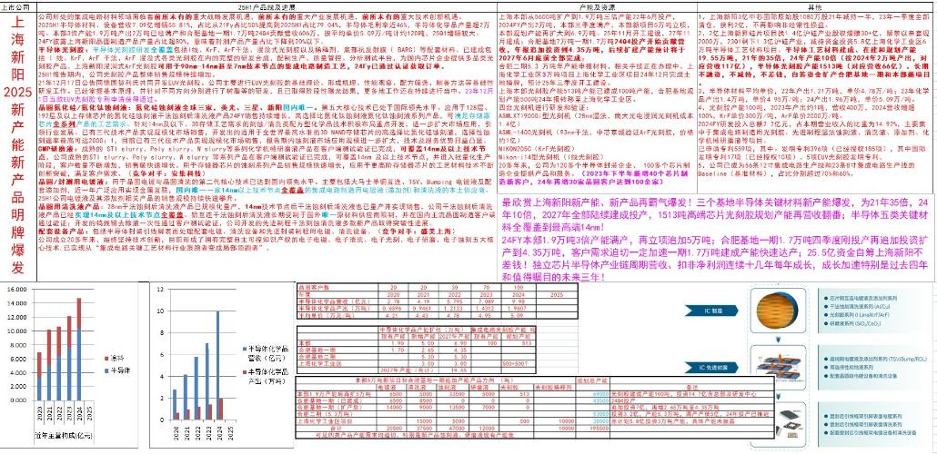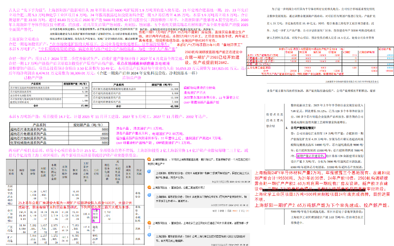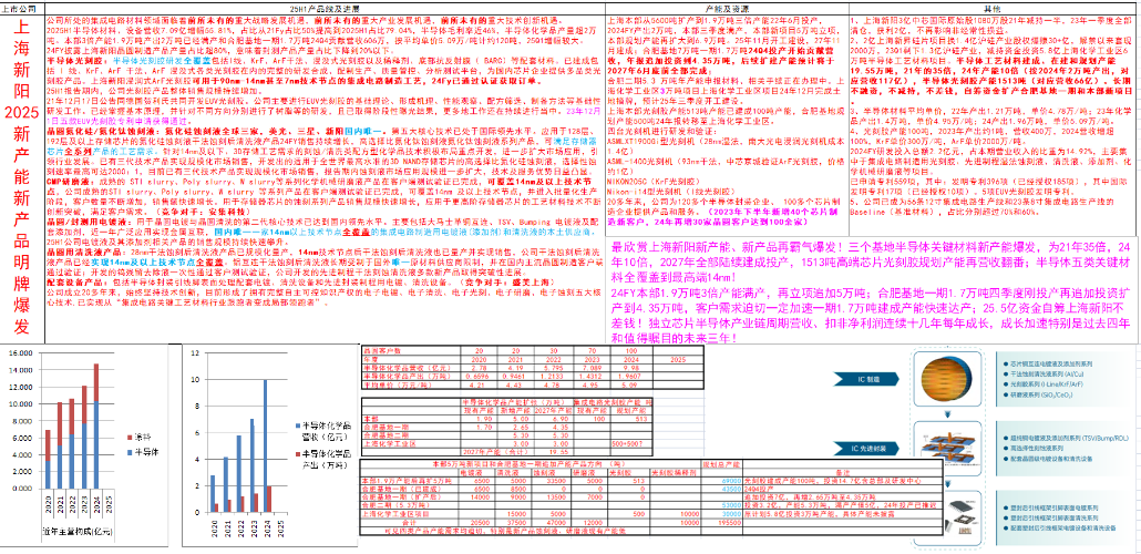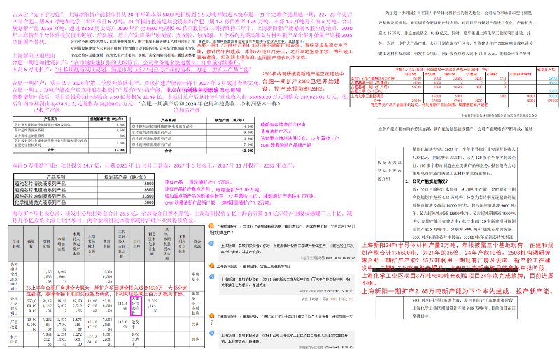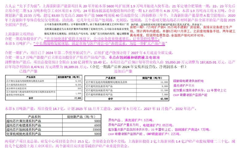 $上海新阳(SZ300236)$@妙想上海新阳三个基地产能扩产分别多少,各基地扩产进展如何?