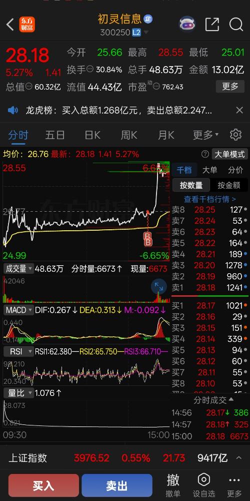$初灵信息(SZ300250)$这是M顶了吗