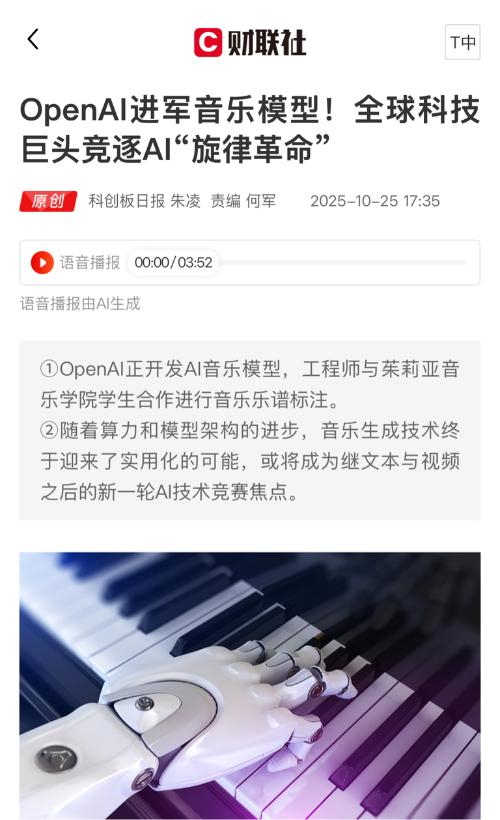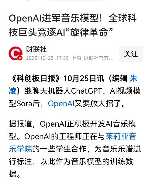 $昆仑万维(SZ300418)$OpenAI的行动证明了AI音乐生成领域具有巨大的商业潜力! 昆仑万维已率先在该领域实现商业落地,其AI音乐业务年化流水收入已达到约1200万美元,其技术和商业化已取得先发优势!