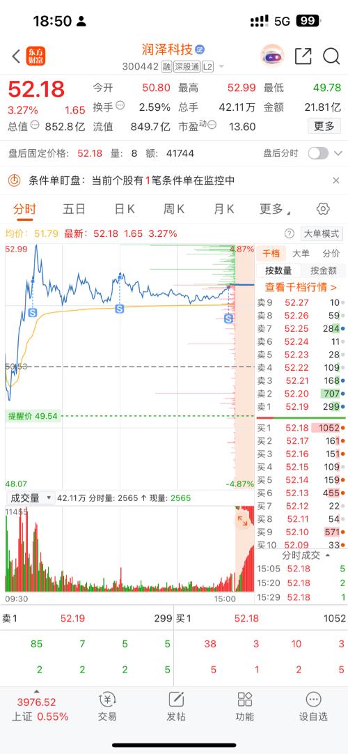 $润泽科技(SZ300442)$我先声明我不是晒单,对于800多个亿的盘子我这是九牛一毛。我的发帖也不会影响到什么。我只是告诉你们我也是一个真实的韭菜。而且我说了看好我是真买了,今日没有操作。