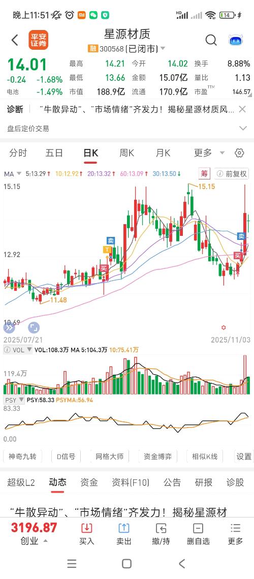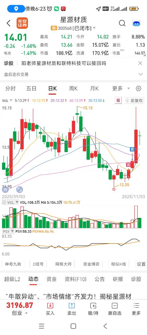 $星源材质(SZ300568)$几个数据有意思:换手888,总手108,总值188,股价14.01。发发发,要你发,要发发,要死了要,盲猜一路发。