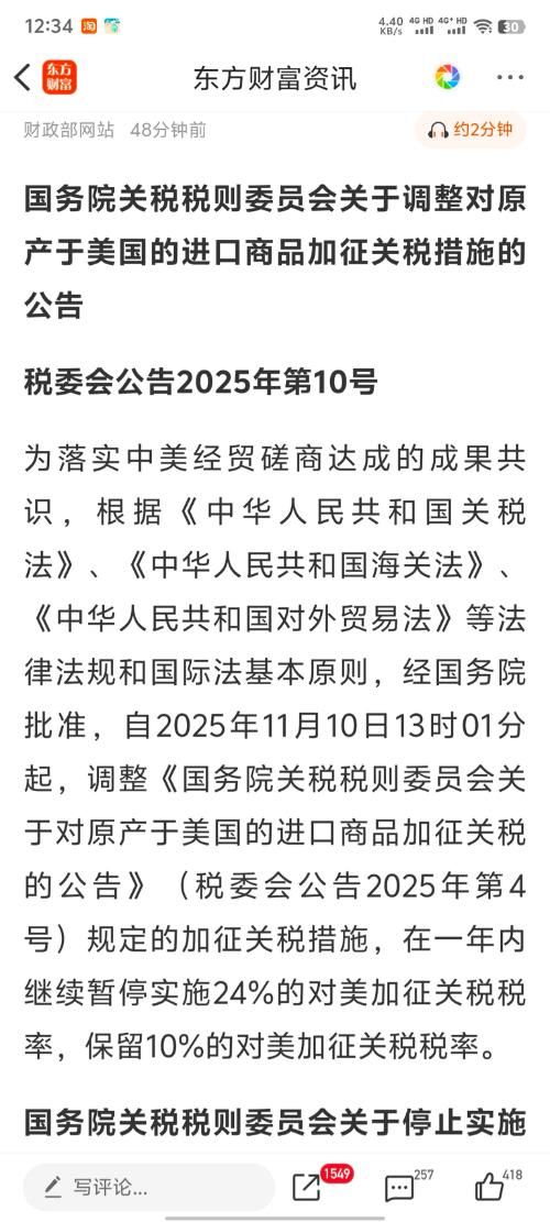 转自经济观察网, 北京时间11月5日早上6时29分及6时53分,美国白宫连续发布两份美国总统特朗普签署的关于调整对华加征关税税率的行政令: 经中美经贸磋商,特朗普已确定有必要且适当地处理第14195号行政命令中宣布的国家紧急状态,自2025年11月10日起,取消针对中国商品(包括香港特别行政区和澳门特别行政区商品)加征的10%所谓“芬太尼关税”。 在中美两国元首会晤后,中美两国就经贸关系达成了一项...