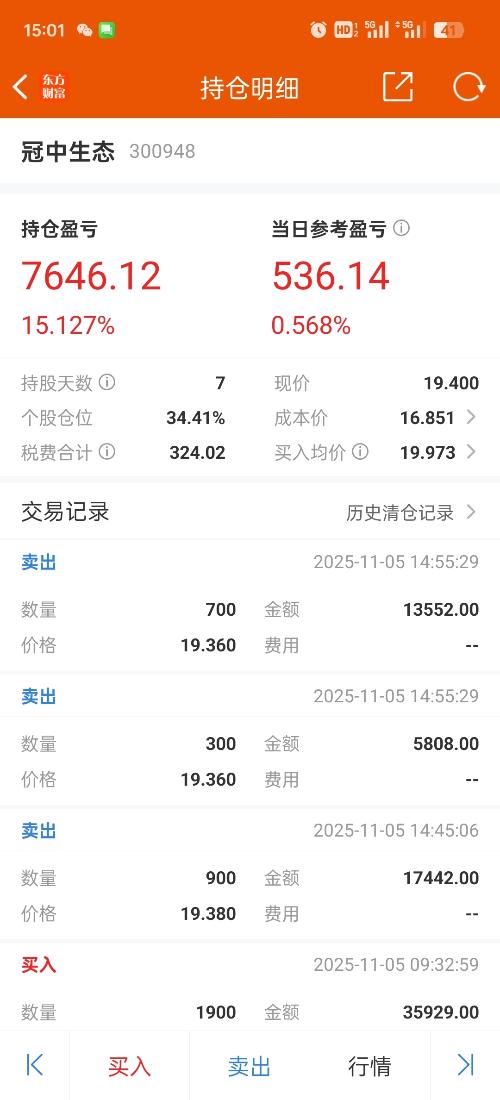 $冠中生态(SZ300948)$194,194就显着你会控盘了,走人