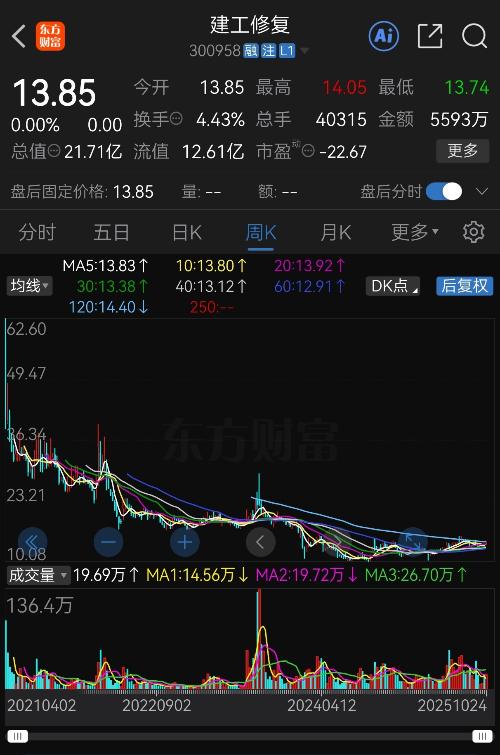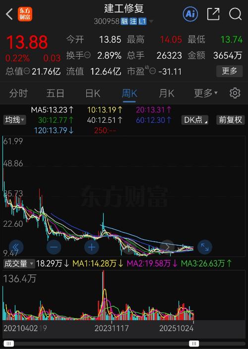 资讯 建工修复(300958.SZ):2025年三季报净利润为-7181.23万元,同比由盈转亏