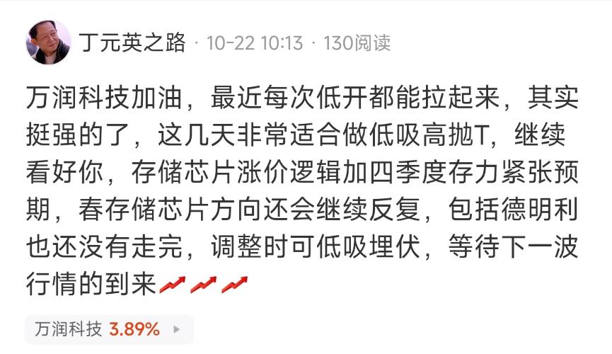 $德明利(SZ001309)$德明利板了,万润也在拉升中,不过龙头始终是龙头,德明利是存储芯片主板龙头,这是要有二波的节奏,我并不是看到涨了才说涨,前天提调整时我就分享了德明利调整是低吸埋伏的机会,恭喜提前低吸了的朋友们,存储芯片涨价逻辑和四季度存力紧张预期还在,板块就还有反复的机会,万润也还在继续持有中,安心等补涨,正宗板块低位标的,至少也得上20吧。 另外中线票没有必要天天说,拿着就好,风来了...