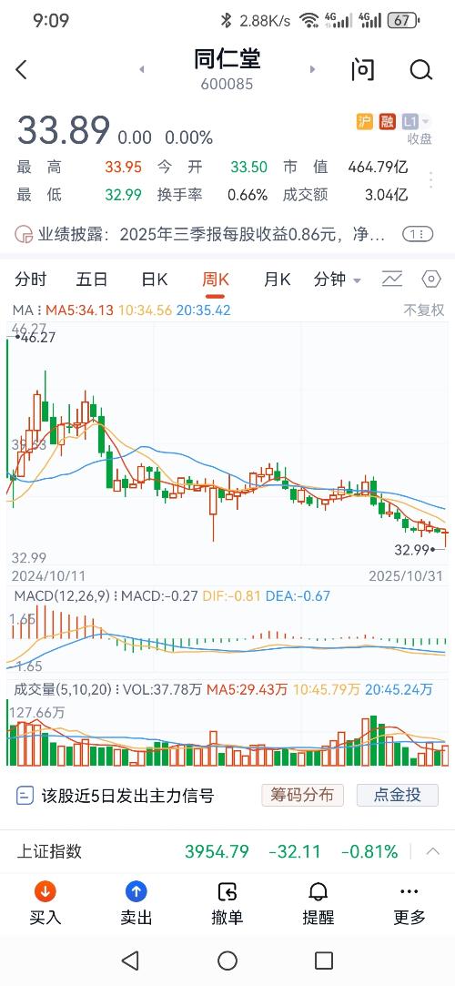 $同仁堂(SH600085)$中期底部探底完成,短期反弹行情第一目标35.4,第二反弹行情38。