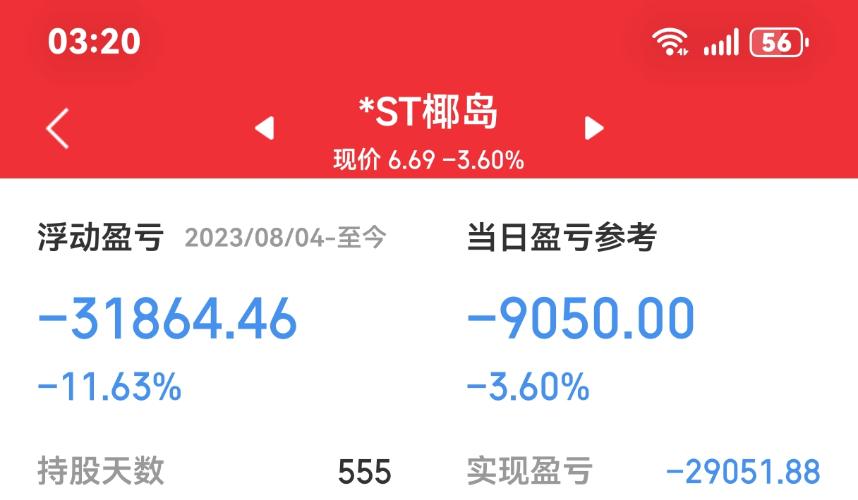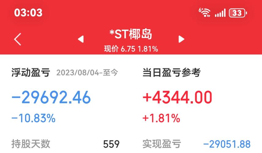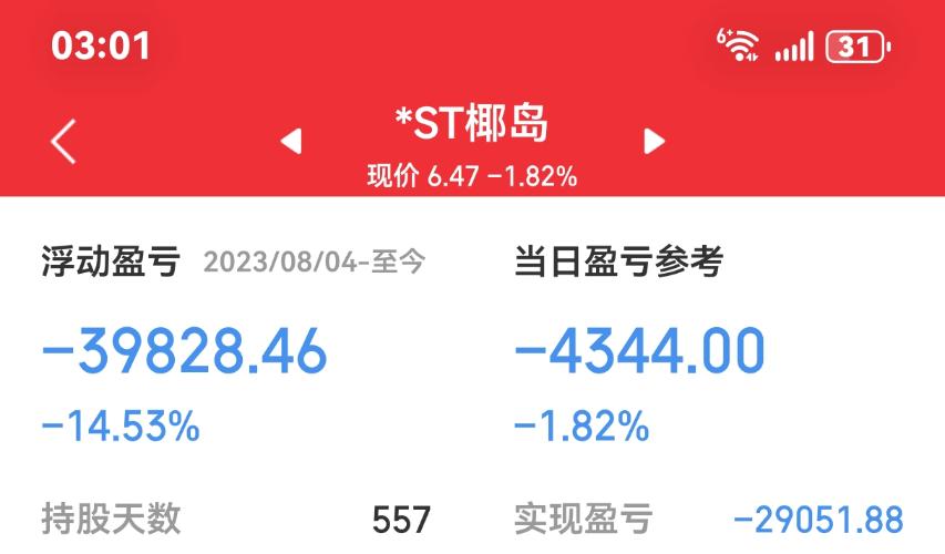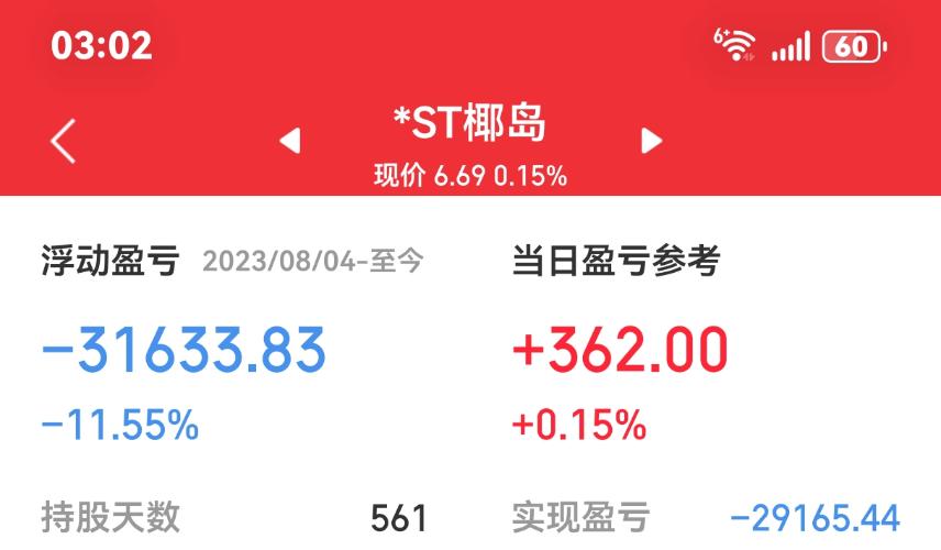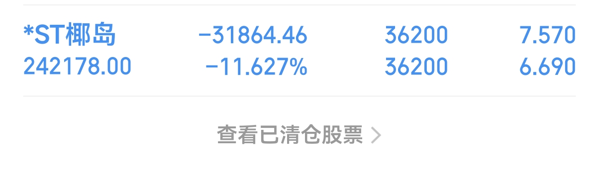 $*ST椰岛(SH600238)$卖早了74卖的唉挂低了