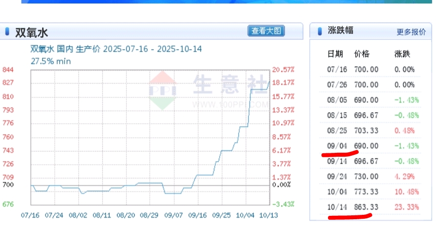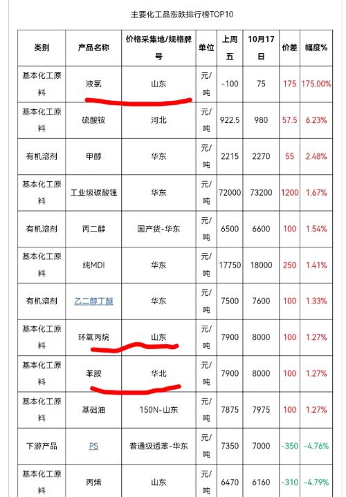 $华泰股份(SH600308)$ 华泰股份不涨是天理不容! 化工产品价格全线上涨,双氧水价格涨幅惊人,苯胺和环氧丙烷价格涨幅超过10%,液氯价格由负转正!阔叶浆价格下半年也是一路上涨!