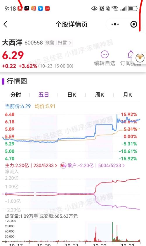 $大西洋(SH600558)$周一低开继续震荡调整,