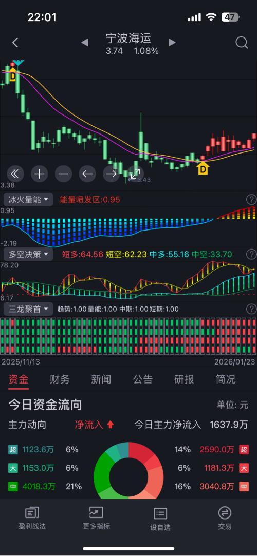 $宁波海运(SH600798)$主力前天都进来了,处于能量喷发区后续看涨